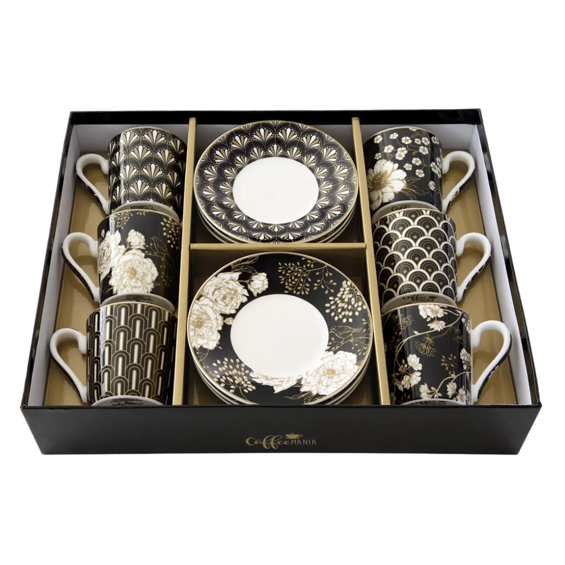 Ensemble de 6 tasses à espresso avec soucoupes ART DECO & FLOWERS