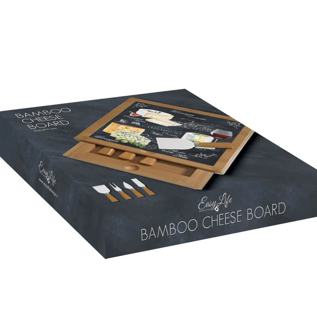Planche à fromage en bambou avec plateau en verre et couteaux WORLD OF CHEESE