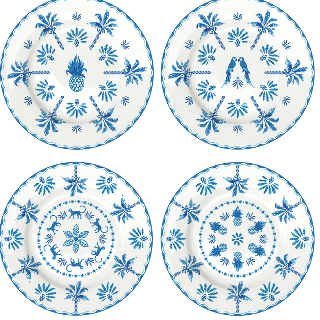 Ce lot d’assiettes à dessert ornées de décors bleus propose des sujets différents mais qui dialoguent parfaitement entre eux. Pratiques et élégants, ils conviennent à de nombreuses occasions.