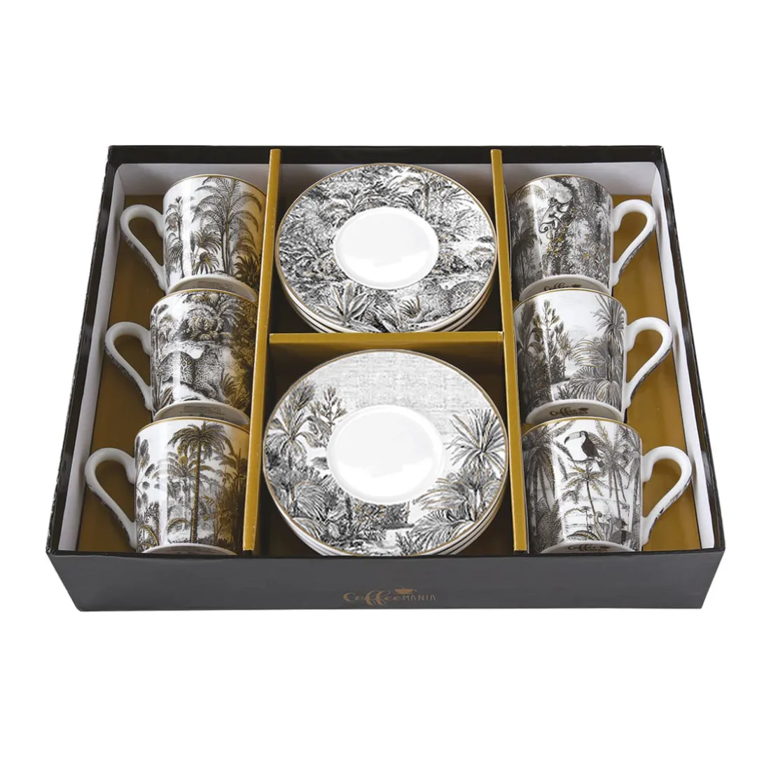 Ensemble de 6 tasses à café de 100 ml avec soucoupes en porcelaine RETRO JUNGLE